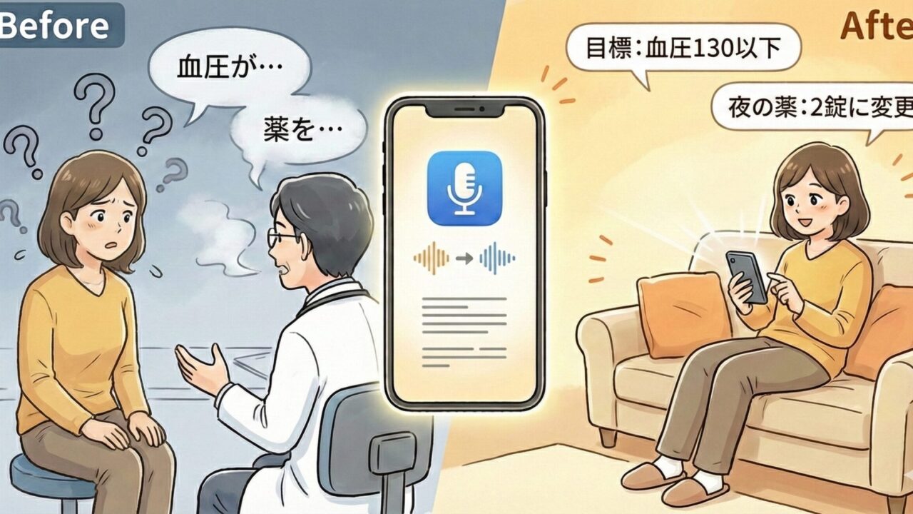 診察中は、録音のことは忘れて、医師の話に集中します。「後で確認できる」という安心感があるだけで、少し楽になりました。